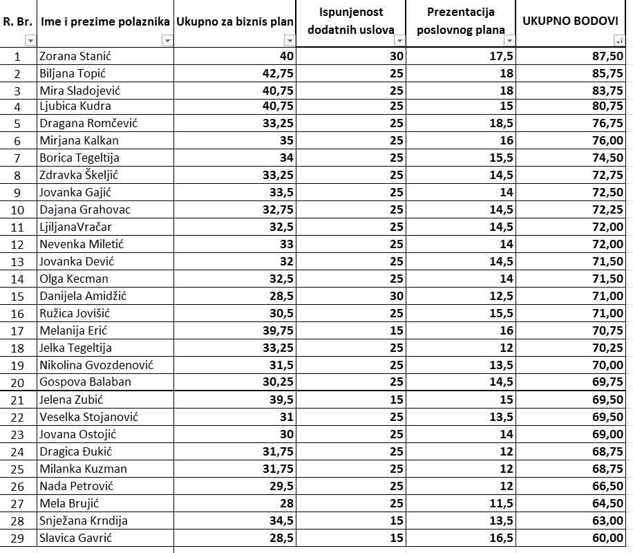 - sprovedena je evaluacija biznis planova od strane nezavisne ekspertske komisije,